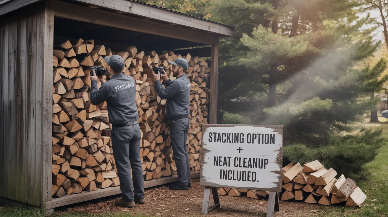 Expect options: fast curbside service, or skilled placement wherever you need it-a covered rack, garage, or woodshed. Workers place bark-down for air circulation, align lengths, and maintain aisles for simple accessibility. They'll set down pallets or runners as required and won't ever block pathways or utility access.